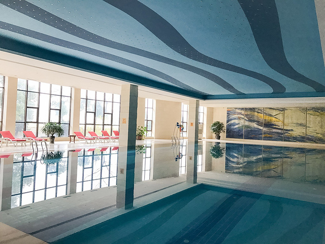 酒店女士的更衣室在一楼,但是游泳池是在B1 的,换完泳衣还需要裹得严实一点,因为还要走楼道,楼道还是有点凉的。