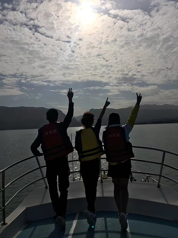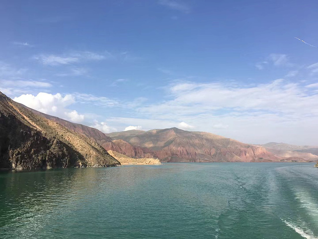 紧接着,我们就去贵德,一路丹霞地貌很是壮观,奇山嶙峋,颜色有些是土红色,有些偏黄色,还有些偏青色,被一路的景色给震惊到了,都忘记了拍照。我们去的景点是坎布拉,没有去贵德地质公园,因为在外面完全可以看到很美很壮观的地貌,根本不用进去,我们本打算从坎布拉回来的时候,夕阳西下的丹霞颜色会更鲜亮和美丽,再拍照,但是由于青海天黑的太晚,还是没能拍到最美的景色。坎布拉非常大,旺季门票360,淡季240,一进去就开始坐车,坐一个来小时的车,才算到景点了,又走路20分钟左右,再坐车,大概20分钟左右去坐船,船上的风光简直美呆了,船是那种可以上到甲板上的,站在甲板上看天下黄河,简直美的不要不要的。当天是阴天,路上的照片都有些灰蒙蒙的,但是我们到了坎布拉之后,突然就放晴了,太开心啦!最重要的是,整个景区只有我们四个人,感觉像是被我们承包啦,哈哈哈哈哈哈哈哈!出来景区听说,后面还来了一波游客,但是景区船要往返,时间来不及,就没有接待他们,感觉我们简直运气好到爆!