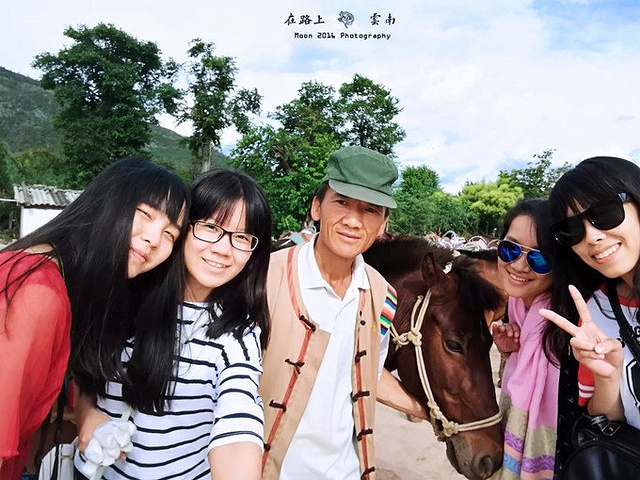 划完船以后的节目是!!骑马!!这个骑马不是骑着平地绕几圈,是真的骑上山啊我的妈!!!山路有多陡峭你造吗!!我觉得我自己爬都费劲,在马背上的时候都为马捏一把汗...实际上也在为我捏一把汗,我超怕它一失蹄就把我甩下去了...事实证明它们都是些出色的好马!!一点事儿都没有!!可太棒了!!而且会有师傅带着我们走,非常有安全感了。(师傅是不是很帅是的。)