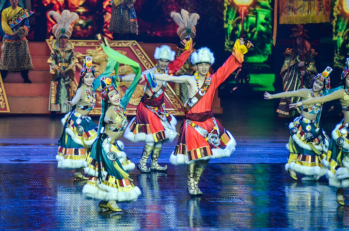 整个演出分为五个部分,分别是:《九寨传说》、《古羌战歌》、《汉藏和亲》、《大爱无疆》和《天地吉祥》。优美而神秘的藏羌歌舞带你进入穿越时空之旅,辉煌的大堂皇宫展现了文成公主汉藏和亲的壮举。5D实景与现代高科技再现了阿坝州2008年5月12日的5.12汶川大地震的惨烈场面,通过全国团结一致的抗洪、抗震与救灾的场景,再次的展现了华夏儿女们团结一致与顽强斗阵自然灾害的高尚精神。这一幕不知道让多少人的眼泪催下了?