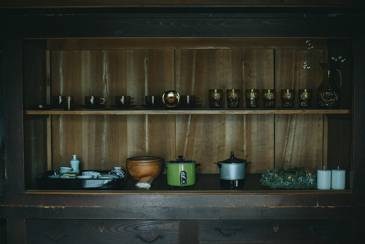 屋子是属于非常传统的老宅,本来我是因为看到屋主的头像上,主人家包着头巾带着两个孩子,看着颇有一种乡土人家淳朴的感觉,特别想见见这样的屋主才借的这处宅子,没想到推门进去,首先屋子很大,超出我们的想象,屋子分为入门厅,茶室,寝室,中间是个带暖桌的餐厅,边上还有一个小小的休息厅,厨房厕所浴室,还有一间主人本来的书房被他封起来当了储藏间,厨房外还有个后院,再看装修,从里到外格外精致,每一件家具和器物都是格调高雅的古董,房间里到处放着大大小小各式的花瓶花器,突然有了一种住在地主家的感觉啊。