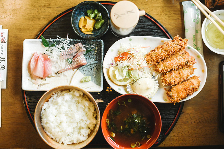 当然吃货在离开的时候心里没忘记美食,看到美术馆门口拐角处就有一家食堂,我对日本的小食堂总是充满了幻想,所以有机会就一定要去试试,丸鱼食堂里提供各种海鲜料理,这边最出名的就是牡蛎天妇罗,所以我们各自点了自己感兴趣的海鲜定食吃起来。来自游记璀璨淡泊生命之花-记我的第五次日本之行
