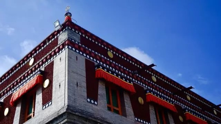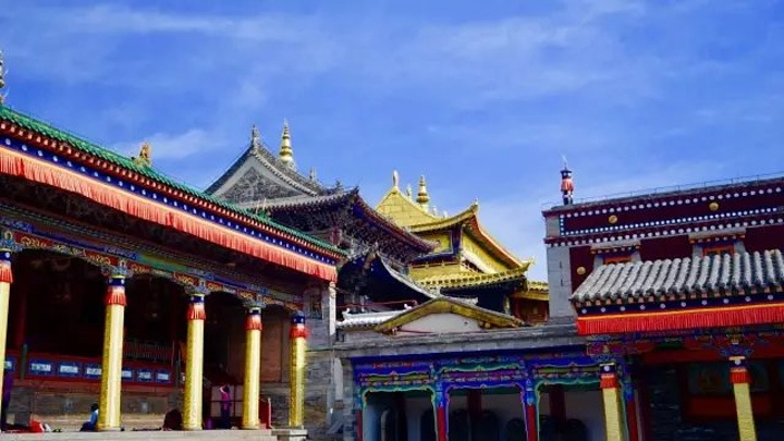 跟汉传佛教中轴对称、纵深进入的建筑布局不同,塔尔寺的建筑群是由众多的大殿、经堂、佛塔、学院等组成。