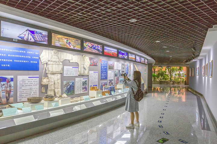 馆内展出特色的东北民间小调、独特的赫哲族鱼皮衣、长6.93米的鄂伦春族桦皮船……
