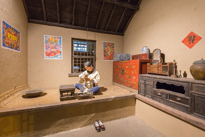 在展馆的中心区域,一座具有东北地区特色的农家院落摆放在当中。院内的板车、屋内的炕、家具等物品完全是按照实景进行复原,再现了东北农家的生活场景。