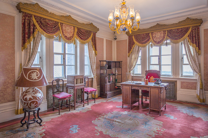 二楼原设计为溥仪和末代皇后婉容的寝宫,因溥仪疑心日本人在同德殿安装窃听设备而从未使用。