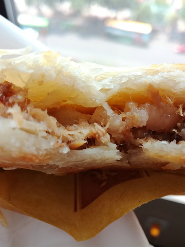 重点来了!潼关肉夹馍!馍酥脆,肥肉不腻瘦肉不柴,人间美味!国宝级肉夹馍!油很大,沁的纸上都是,但超级合我胃口,即使吃腻了喝口酸奶也还能再来二斤!