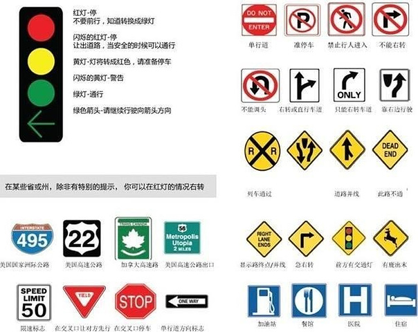 美国自驾常用标志: