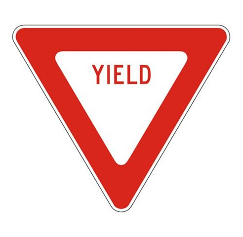 当机动车驾驶员“YIELD” (让行)的标志时,辅路车辆需要避让主路的车辆,机动车需要避让行人等。