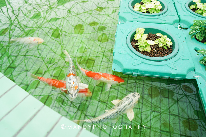 这个锦鲤和植物共同生长的鱼植共生池尤为受到小朋友关注。