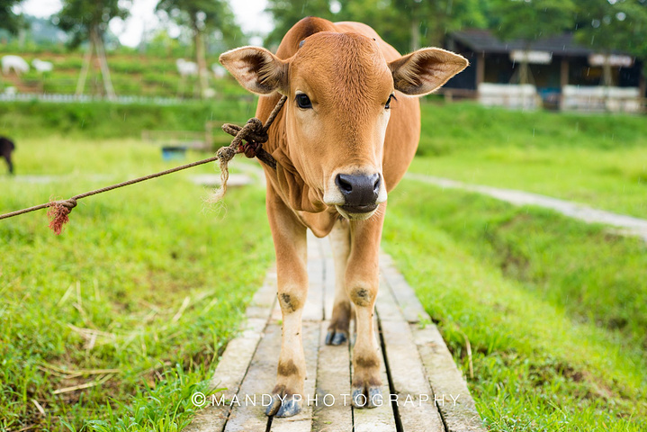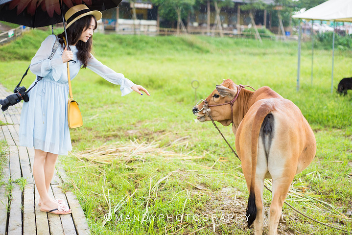 还有田里的小牛和小羊,都没有被拦着圈养起来,在田里走,游客可以直接伸手触碰它们。它们被驯养得非常乖,只要你不嫌弃气味,还可以给他们来个亲吻。
