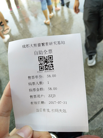 58元一位,成都一上午都在下雨。可以在基地购买10元的观光车票,但是要排队近一个小时才能看到国宝。