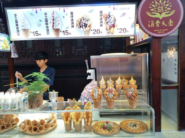 锦里美食一条街也被称为是消费的天堂。20元的鸡蛋仔随处可见。锦里全街道实行一口价,如果发现商家有议价行为,可投诉。