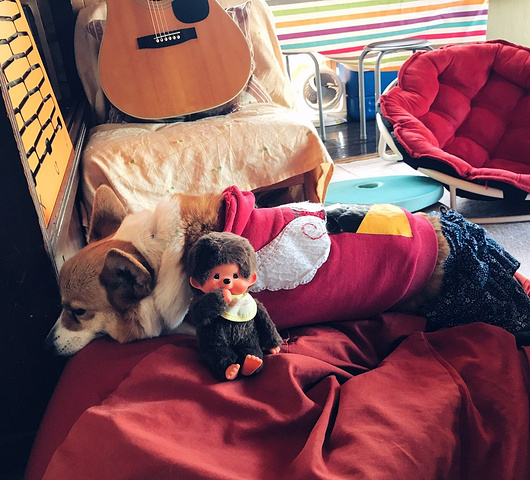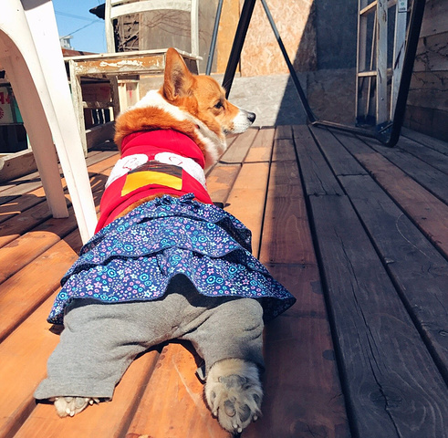 店里有一只懒洋洋的柯基,大部分时间都在睡觉,或者生无可恋的趴在那。关键是那个小裙裤,太好笑了,我就像被点了笑穴一样完全停不下来,而且随我怎么摆弄,胖柯基也不生气一动不动完全懒得理我。