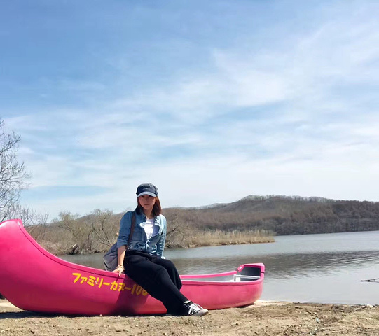 进来看到湖边粉色的皮划艇,我乐坏了疯狂凹造型拍照。