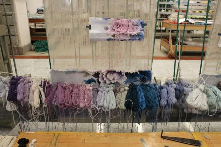 由于挂毯生产工艺复杂,编织一条手工挂毯,专业织工需要十年以上才能完全掌握。由于纯手工织造,因此要14-18个月才能完成一块传统挂毯。手工挂毯工艺复杂,手工艺人们每日工作异常枯燥乏味,面对织毯机梁,大脑时时分析设计图稿要求,指挥双手不停地在几百种羊毛色纱中选来选去,挑选出一种需要的羊毛纱,编织在径线上,然后用毯刀砍断。选、织、砍,循环往复,每天无数次地重复着这些动作。