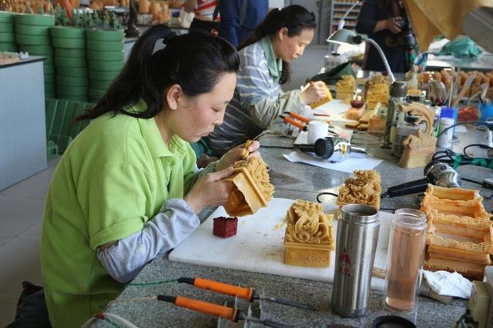 除了手工挂毯,青铜器工艺品也是力王公司的一大特色。