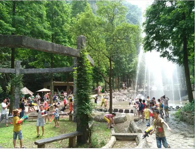 这里有独一无二天然"森林水世界"水上冲关、黄金水道、森林沐雨。喷泉营造了如梦如幻、如雾如纱的奇境。喷泉急射的水柱,直冲云霄,而后坠落地面,如天女散花,如白玉跳珠,嘈嘈切切错杂弹,大珠小珠落玉盘。即使人在喷泉的边缘,依然能感受到丝雨纱雾在氤氲,在弥漫,把人笼罩住。