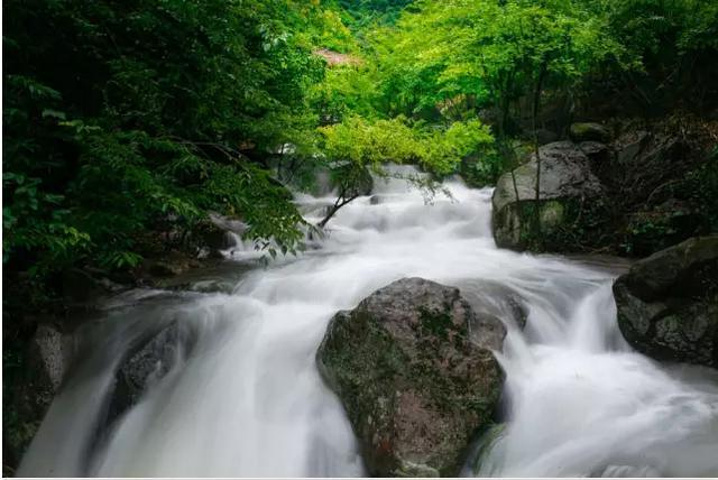 溪水之美,在水之灵秀!自"浙中第一溪山"门楼至平安茶场,地势平缓,水流石不转。溪中巨石纷呈,错落而有致。溪水潺潺流,款款行,水皆缥碧,游鱼细石,清澈见底,穿行在溪中巨石缝隙间,水流叮咚,如舒缓的轻音乐一路伴奏,萦绕耳际,如听仙乐!