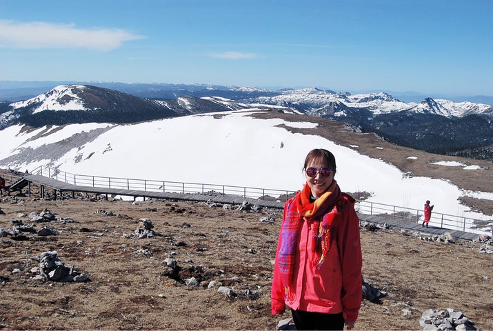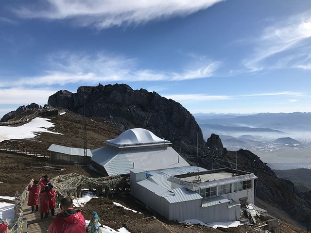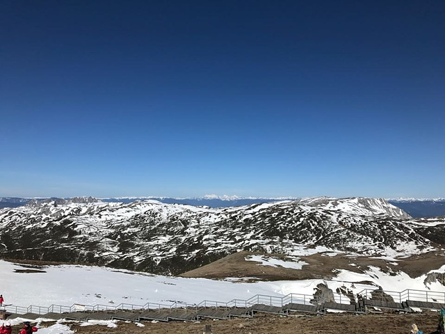 雪山人不算太多,散客很少,有两个团来。上行索道两段,每次乘坐8人,大概50分钟上顶。石卡雪山是云南唯一一个可以登顶的雪山,据说山上的雪是今年四月份时候下的,整个冬天都没下雪,我们走运今天能看到不少雪,今天天气不错很晴朗,等也不算大,一路都不冷,就是山顶封有点风稍微冷。上来之前卓玛让我们提前吸氧,然后不能剧烈运动不能跑跳,下索道还爬了十几台台阶,感觉心跳有点快停下来缓了缓。