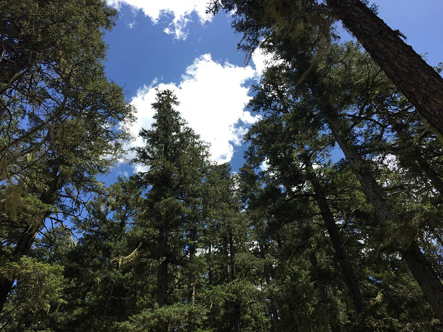 最后一个碧塔海的栈道大概4.2公里,步行得1小时20分钟,我们还是决定走过去,一路景色太棒了,也不冷,很多姑娘穿裙子,我还是穿着薄的冲锋衣,中间吸了氧气,没有很明显的高反,大概公园里植被茂盛含氧量高一些再加上心情好就没什么事儿,不过氧气买了不用也浪费就吸了。