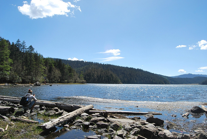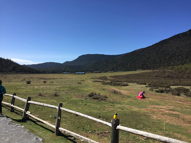 大概12点半多我们到了普达措国家公园,门票258(去哪儿上252要提前2小时我忘了来不及),现役军人免门票,但要交120块的车费。公园主要有三个景点,蜀都湖,高原牧场,还有碧塔海。从一个点儿到另一个都需要坐车,一般大巴坐满就发车。