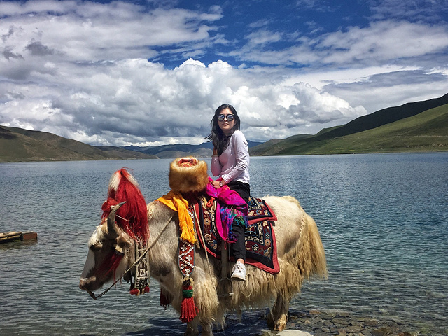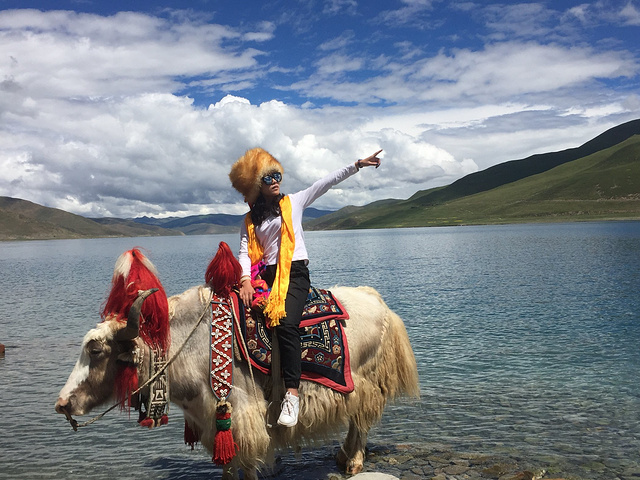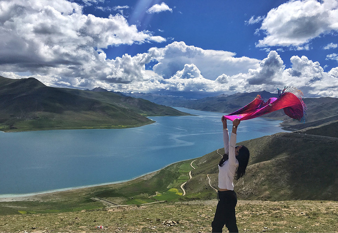 记得带上鲜艳的丝巾或者穿上红裙子哦,在羊湖又被穿着红裙子的女生抢去不少镜头。