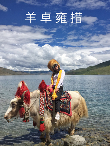偷偷地站在藏獒旁,你再靠近点,就要给钱了,这里拍个写着羊卓雍措石碑都要钱。