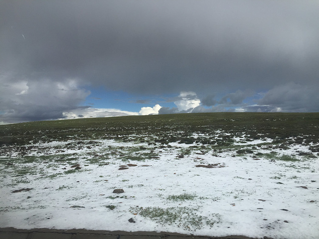 下雪啦啦啦,八月飞雪呀,壮观得不行了。激动得我蹦蹦跳跳,第一次见雪啊,这种白让人震撼不已啊。我玩得忘记了冷,在那捏雪啊,还想堆个雪人,她们说把我扔在那好了哈哈,原来我的牙差不多跟雪那么白,眼睛都快瞪出来了。激动得我现在还没平复,一直在车上哇哇叫。这次西藏之旅,值值值值值值值。