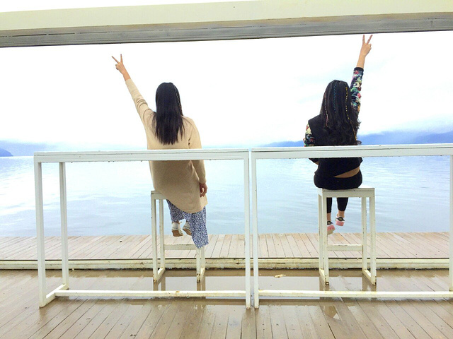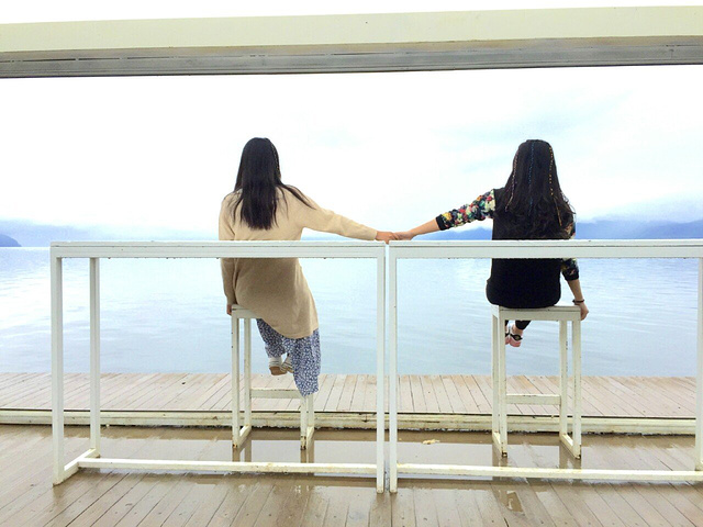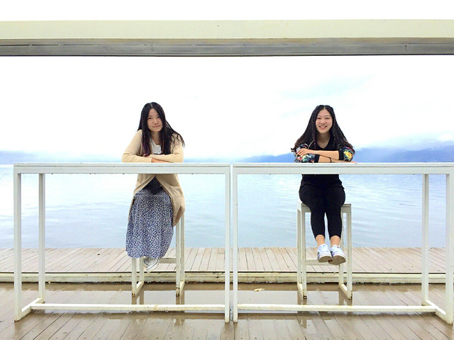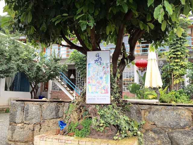 在双廊的第一天,天气还是阴雨绵绵,不过阿九最开始也安慰过我,晴天的大理或许真的很美,但是雨天指不定也有不一样的风景呢。这句话我一直记到现在,以至于现在出去旅行惯性在包里放一把伞,下雨了,撑上伞,心情也一样愉悦。本来来双廊最经典的就应该租一辆电驴,环洱海骑行,可是天气不允许,我们就开始在双廊小镇找乐趣。一直在攻略上听说双廊的客栈文化很浓厚,所以我开始就想好要去海地生活和白凳白桌合影,再去63别院吃点东西,顺便路过暖暖客栈,看一看那段长满绿植的阶梯。这些客栈基本都在大建旁村的小巷里,除了暖暖,其他真的都很难找到。不过当地人都很热情,他们都会很热心地指路。最后用尽洪荒之力找到海地生活,以为终于承包一片海景了,结果发现排队照相的人都排到门口了。。。