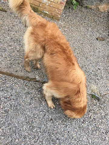 狗狗,很是自觉地把便便拉在草丛里。