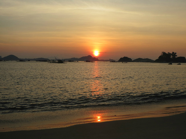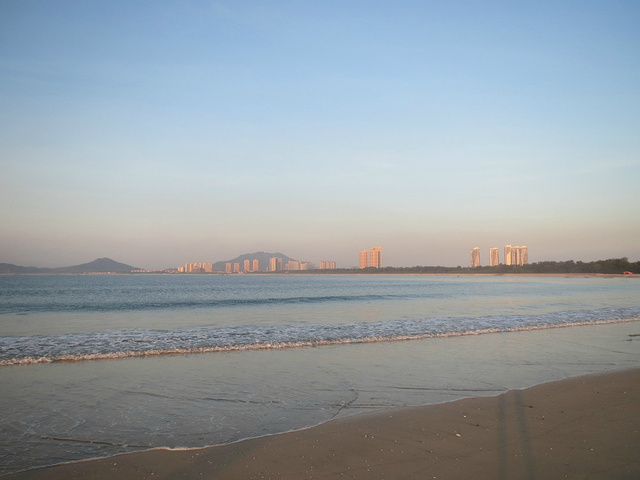 因为酒店距离海边很近所以五点多我就早起去看日出了。早晨的海滩与我们平时看到的海滩不一样,除了海浪声一切都是那么的宁静。提着鞋子赤脚走在柔软的沙滩上面,清爽的海风拂面而来,让人心旷神怡。