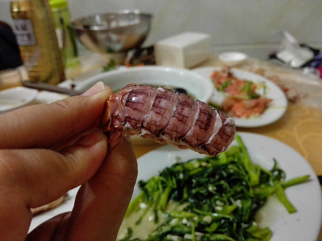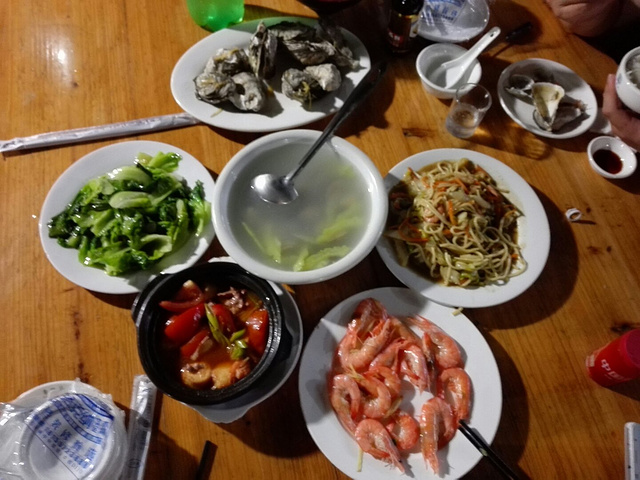 晚上我们又穿过别墅区来到庄园御海的售楼部附近,这边有很多海鲜大排档,我们选了一家蝶岛风味海鲜馆。味道还不错,价格相对来说也还好,点了五六样东西外加一瓶饮料总的145元。