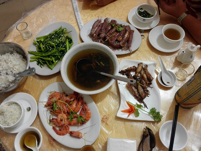 由于酒店是12点退的房,所以临近中午的时候我们就收拾好行李准备去西埔县城吃饭了。东山这边的的士不多,几乎很少看到,大多数是摩的和一种当地人叫红知了的红色载客三轮车。查了攻略我们出酒店不远处有一个东沈(百亿新城)站,可以搭乘往返西埔-铜陵的公交车,不过一出门的时候刚好碰到一辆三轮车想说省事一点就直接坐着它去西埔县城了。这样一趟30块,我杀价的功夫不好所以就没讲价。为什么吃饭特地跑去县城呢,因为在海边吃多少都会比县城贵一些,为了放开肚皮吃海鲜所以特地跑去县城。根据之前查的攻略我们找到了位于西埔县城台联大厦小巷子里的一家叫做【小家庭】的大排档,价格的确是很实惠,味道也很不错。