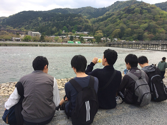 我们也坐在岸边发呆了半个小时。看着出来春游的学生们集合,突然怀念起学生时代……那时我们也是这么无忧的~