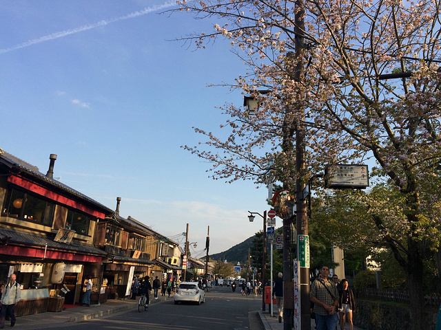 逛完渡月桥准备往回走坐岚电回民宿。天气突然放晴了。