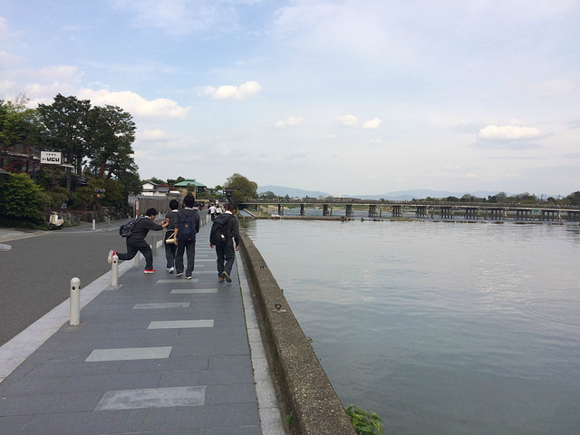 穿过岚山公园,来到跟山林截然不同的景致,渡月桥。