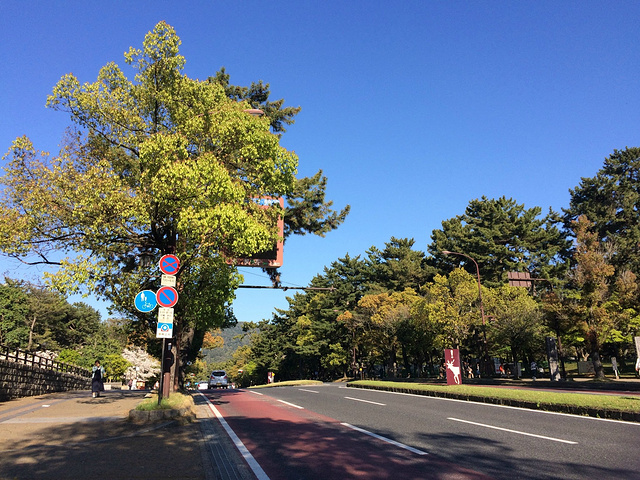 马路上还有提示缓行“让鹿”的指示牌。这是一座鹿的城市~