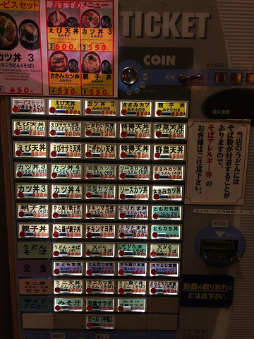带中文字的配图菜单,菜单旁边就是点菜的投币机器。