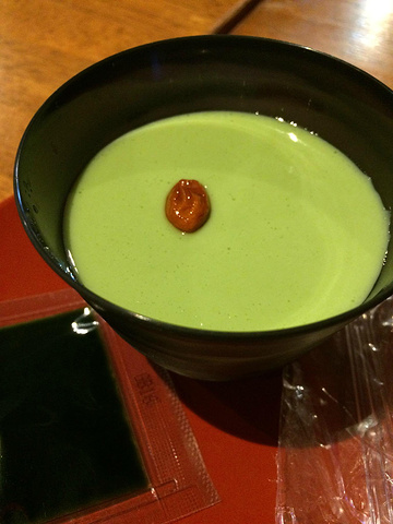 好像叫抹茶豆腐?。实际上不是豆腐,算是个小甜点。日本的抹茶都是小清新的味道。
