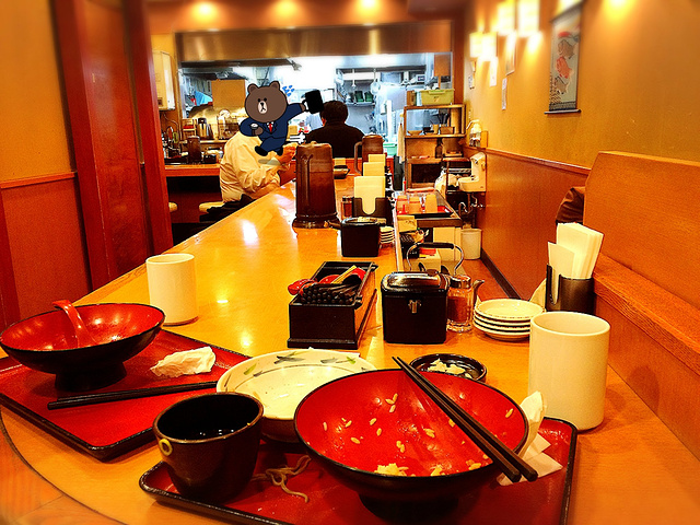 吃光光。我们吃饭的时候已经晚上9点多了,还是看到很多上班族独自来吃饭。想起京都民宿老板说过,日本的男人有个奇怪的习惯,下班如果按时回家吃饭的男人会觉得挺没面子。就算是一个人也偶尔会到外面吃饭。