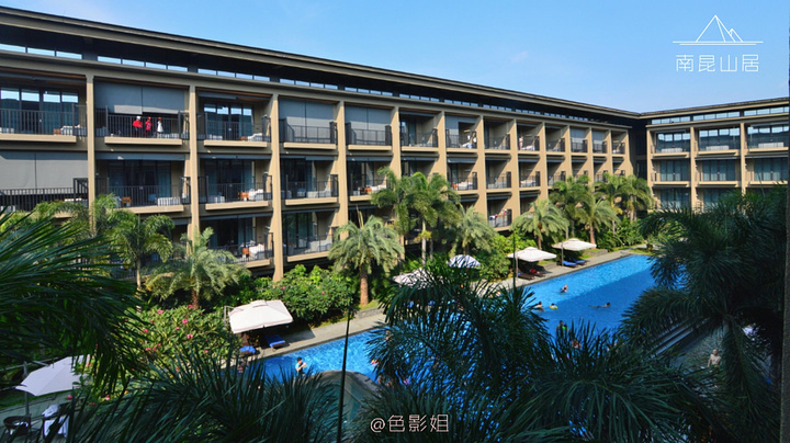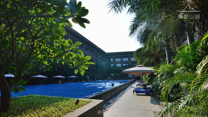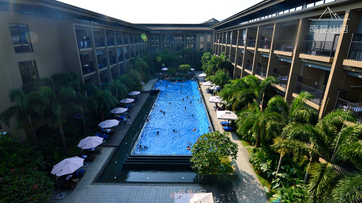 哈哈最爱泳池,很喜欢这个大泳池,水没有太深,我也敢在里面游,泳池三面环绕着客房,房间对着泳池,也是美丽的景色哦。