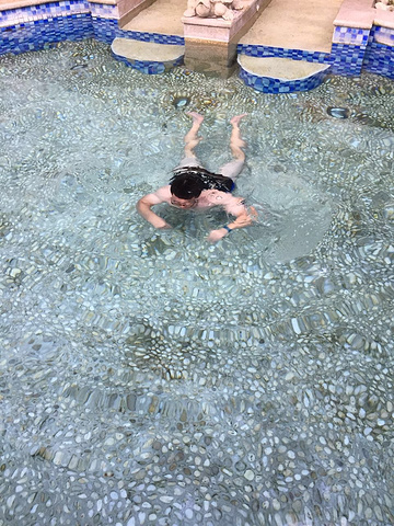 我第一次洗温泉,我以为外面乳白色的池子更有益于身心健康呢,因为我的另外三个同伴都泡在外面乳白色的池子里,直到我走到里面看见这个泉水清澈见底的池子,我才恍然大悟!