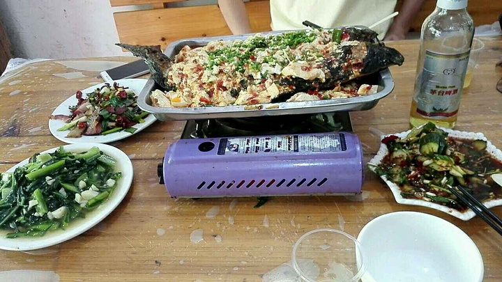 来镇远有些小时了,还没有尝过这边的酸汤鱼和豆花烤鱼、烙锅之类的正餐,这是不对的,呵呵。一条河边都是这些东西,选择恐惧症的我们只能用某软件团了一个2-4人的套餐,到店里安心等待有名的豆花烤鱼上场,酸汤鱼嘛,准备是晚上去试的。