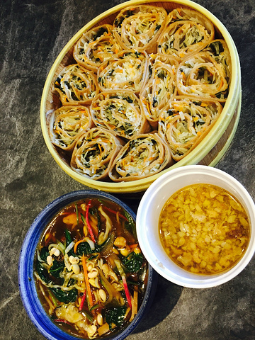 我们两个女生,档次的非常撑,花了大概才100元钱。当然里面有很多特色菜,我们因为一路上吃了不少零食,所以就点了一点清淡的食物。