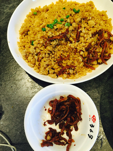 因为当时还算早,所以我就与朋友一起打算吃顿好的-,我们看中了大众点评上评价>9分的当地比较有名的粗粮馆----369粗粮馆(鼓楼那一家),603路到322医院下车,然后转一趟公交车就可以到达粗粮馆。这家馆子名字听起来不起眼,但是当一打开大门的那一刻,你就知道档次不低。从服务员,装修到别人点的菜。你会觉得自己来对了地方。