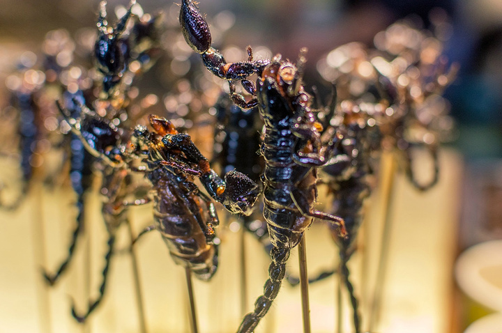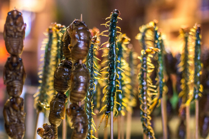 还有一些奇怪的食物。蝎子蜈蚣蝗虫之类嗯~不要轻易尝试~大多是围观的人多,买的人少。心疼老板
