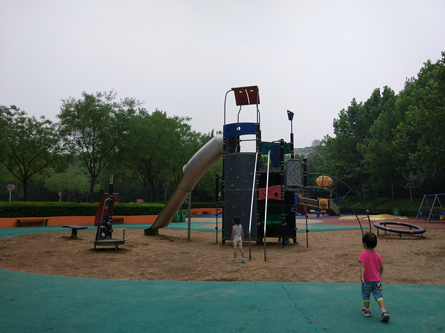 这还不够,竟然还有个水沙世界能把孩子最痴迷的三种东西(水、沙和滑梯)结合在一起。平日乐园内水不开放,这里竟也是满满的泥和从水管中偷偷跑出来调皮的小水流,水和沙子在这里光明正大的结合在一起,孩子撒欢的理由更充分了。我都能想象出孩子们在这里疯狂的样子,不过我还是禁止了我家俩小朋友在这里寻欢作乐,留到下次去再说吧!