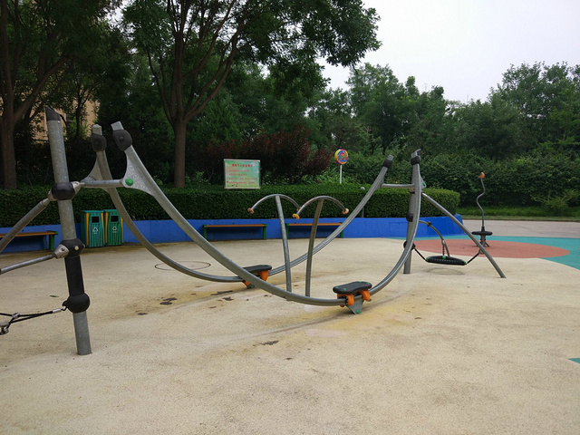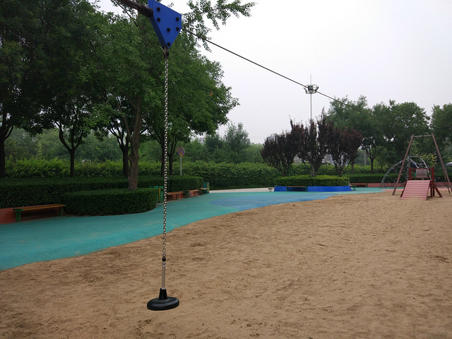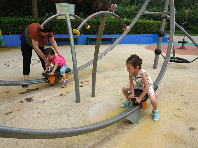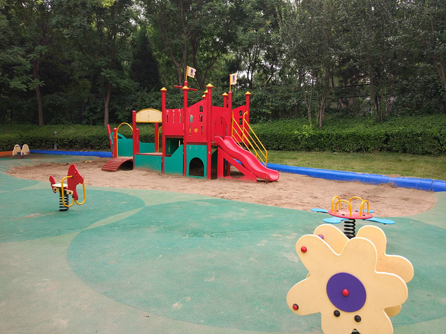 沙池旁边还有小宝宝们玩的滑梯,以及一些过家家的小屋可以休息,双人跷跷板在这里满目皆是,合作也是这里游戏凸显很重要的一个项目。