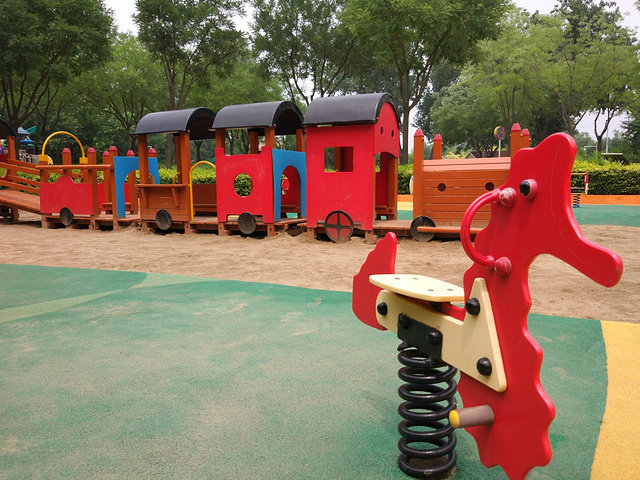 水能和游乐项目结合,沙子也可以,你看这呜呜前进的小火车就在沙池中,小宝可以在这里穿行练习障碍反应能力。